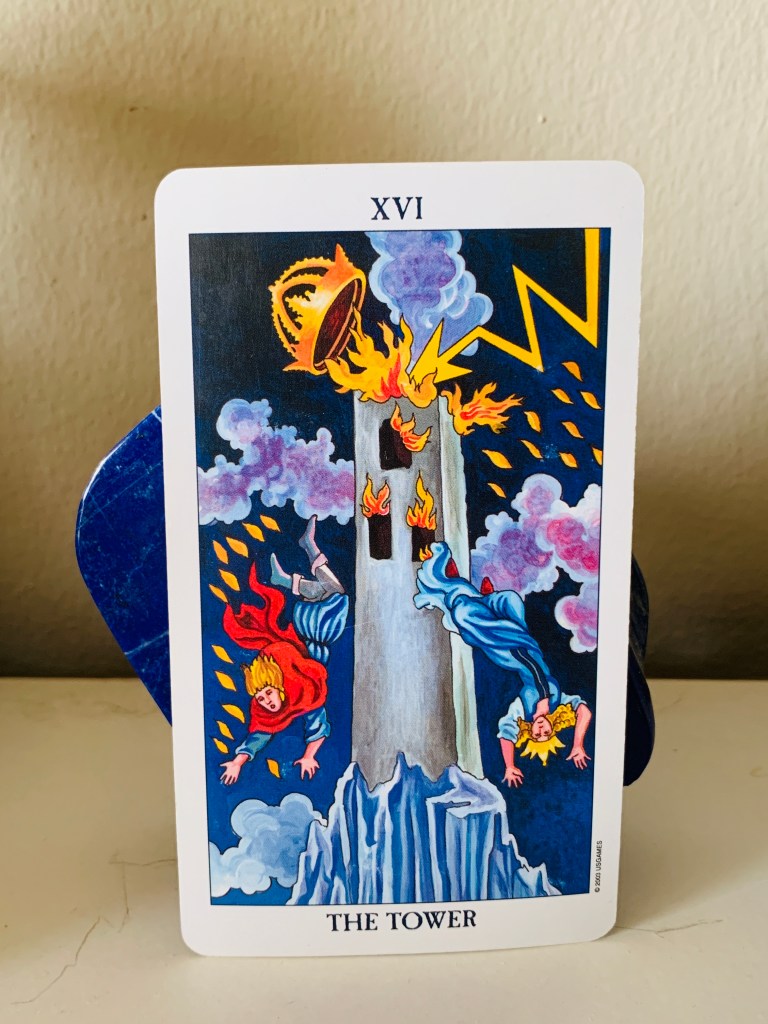 Storm clouds, pelting rain, three swords stuck through a plump, red heart. This is not a good harbinger for the upcoming Valentine’s Day! In Tarot, swords represent the element of air, thus thoughts, words, communication in general. If you’ve been hurt by someone’s words or if you’ve been the one to lash out, now is the time to come to terms and reconcile. Swords are double-edged–they can vanquish and save the day or they can wreak havoc and destruction. Consider the effect of your words. What kind of communication do you think fosters best results? If you’ve been hurt, try to forgive and move on (it’s best for you to let it go). Maybe try not to take things so personally–we all have our moments. And if you are hurling invective into your universe, check your attitude. There may be better ways for you to communicate your needs. The good news is that storms don’t last forever. The sun will come out and even perhaps a rainbow.