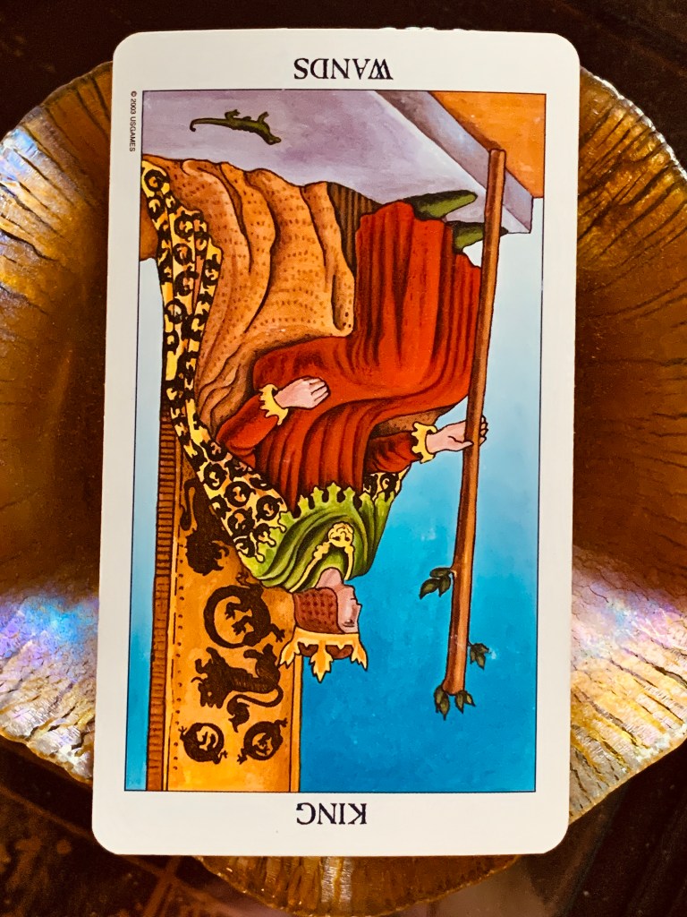 The visionary leader is upside down. There’s a snag in the burgeoning plans set in motion last week. We were all so excited with Mercury no longer in retrograde. But alas we need to be clear-sighted and more deliberate with our passions. The fire of ambition is a great motivator but we don’t want to burn out before we get going and we don’t want to align ourselves with stratagems that are too far out of bounds. Let us balance and put right the energies of fire to make slow burning embers. Some kindling will soon become ablaze.